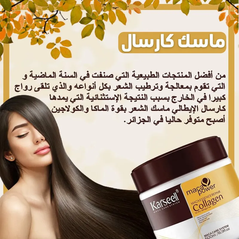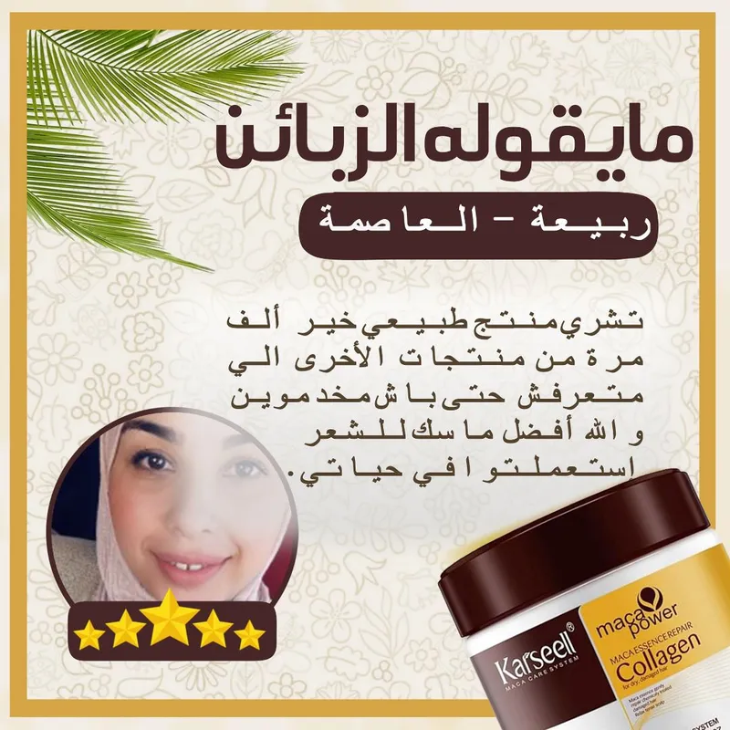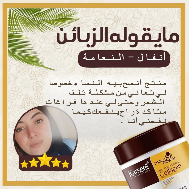 اقوى ماسك معالج يخلي شعرك حرير💯 ✅يحتوي على الكولاجين وزيت الأرغان والأعشاب الطبيعية لإصلاح الشعر الجاف المتضرر بعمق😍 ✅يخترق الشعر بعمق ليقوم بترطيب مكثف ، ويترك الشعر ناعمًا ولامعًا🥰🥰 ✅مناسب لجميع أنواع الشعر بما في ذلك الشعر المعالج بالألوان والمعالج كيميائياً❤️❤️